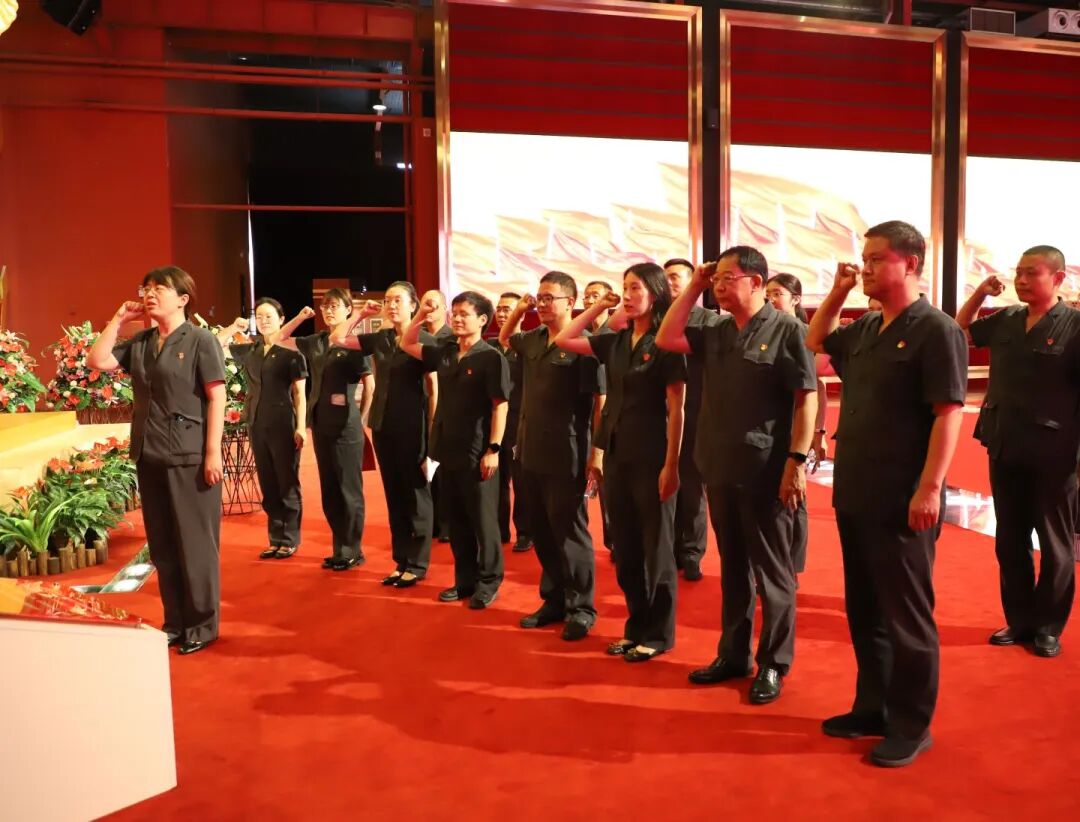 刑庭党支部书记带领全体党员面向党旗庄严宣誓,声声誓言掷地有声,回响耳畔,在场的每一名党员都深受感染、热血澎湃。活动最后,支部书记为第三季度入党党员发放政治生日贺卡,青年党员代表宣讲微党课,引导支部党员传承时代精神,凝聚奋进力量。